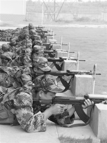 广东湛江应急民兵连集训:一排卧倒射击(图)